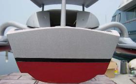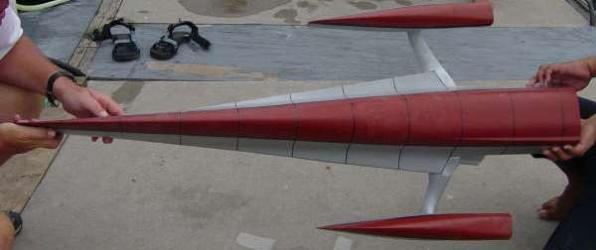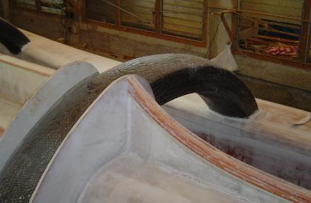 overlaid with e-glass and epoxy, reinforced with Carbon and Kevlar.